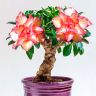 Относится к долгожителям. У нас выращивается как комнатное растение, поэтому высота его редко превышает 0,7 м, а ствол, благодаря формированию, может принимать удивительный вид. Цветоводы могут сращивать вместе несколько стволов, заплетать отростки в косы или обрезать, получая фантастические конструкции. Цветет Адениум в основном с весны по осень, а при соблюдении оптимальных условий выращивания может цвести почти круглогодично. Существуют экземпляры, возраст которых насчитывается более 75 лет. По утверждению разводчиков, эти растения способны жить до 200 лет, переходя из поколения к поколению.
