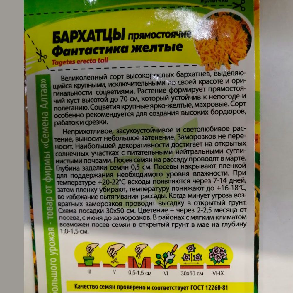 Бархатцы Фантастика Желтые 0,2 г Семена Алтая