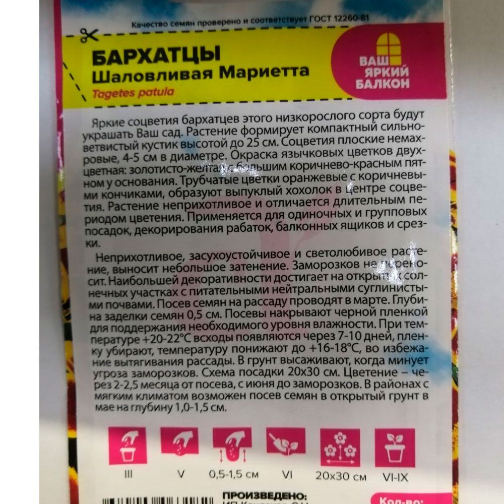 Бархатцы Шаловливая Мариетта 0,2 г Семена Алтая Ваш яркий балкон