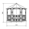 - В комплект беседки, 6 граней , входит пять боковых секций размером ширина 1550 мм высота 50 мм длина 2045 мм и одна входная секция таких же размеров.