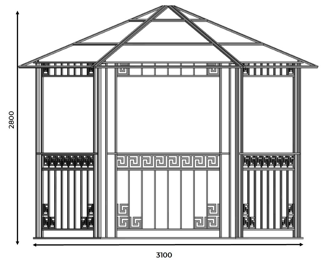 Беседка шестигранная кованая Арт. Б.13 2800х3100х3100 мм