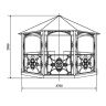 - В комплект беседки, 8 граней , входит семь боковых секций размером ширина 1416 мм высота 50 мм длина 2045 мм и одна входная секция таких же размеров.