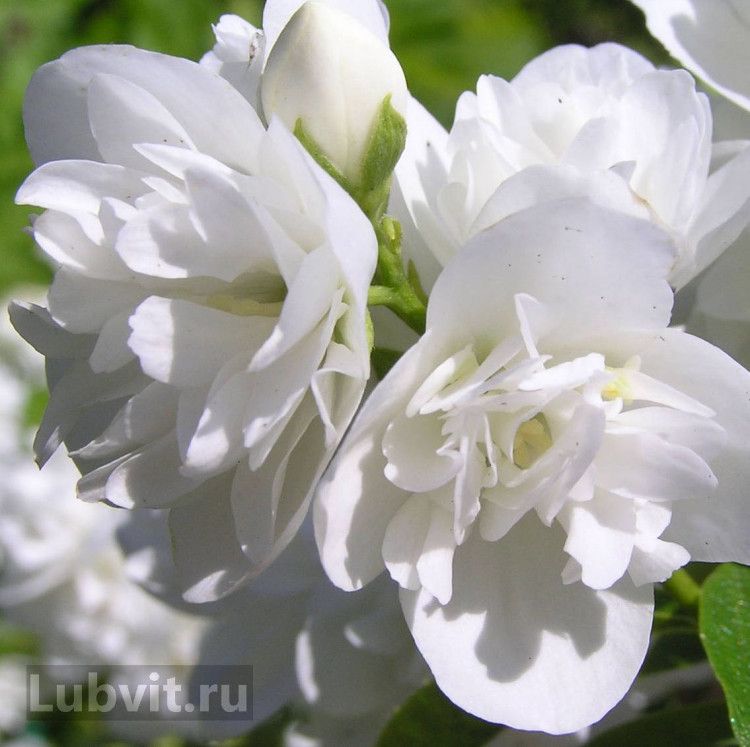 Кусты Снежной бури достигают среднего роста и раскидываются сравнительно слабо. Они выглядят малогабаритно, при этом вырастают до 1,5 м, а в ширину достигают 1,2 м. Свои кондиции растение набирает весьма быстро. За год куст прибавит в ширину 0,25 м, а в высоту до 0,5 м. Снежная буря цветет в средние сроки. Обычно это выпадает на июнь и июль. Образование цветков может продолжаться от 20 до 40 дней. Бутоны формируются очень обильно и даже бурно. Соцветия весьма плотны. В каждом из них бывает до 15 цветов (обычно же 7, 8 или 9). Сечение цветка обычно достигает 40 мм, в отдельных случаях доходит до 80 мм. Отмечается изогнутость лепестков и махровость самих цветков. Бутоны окрашены в снежно-белый тон