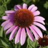 Эхинацея пурпурная – высота растения до 100 см, стебли и листья шершавые. Корзинки 15 см в диаметре. Язычковые цветки пурпурно-розовые, трубчатые – коричнево-красноватые. Есть сорта с более крупными карминно-красными, розовыми, белыми язычковыми цветками. Цветет с июля по сентябрь.