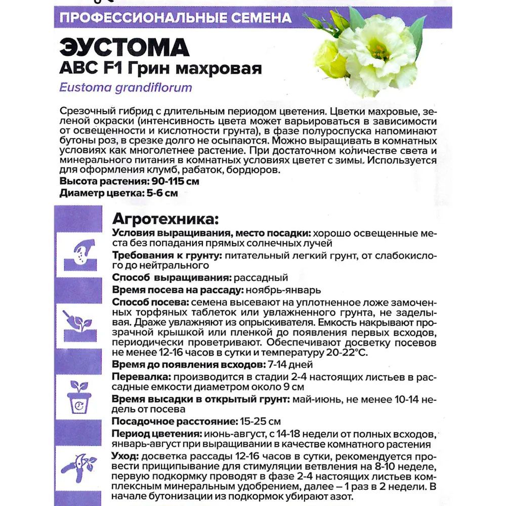 Эустома махровая ABC F1 Грин 5 шт Семена Алтая