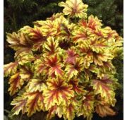 Гейхера ‘Frosted Violet’ (Фростед Вайлет) – Вечнозелёный корневищный многолетник, высотой и шириной кроны до 30 см. Листья 5-9-лопастные, собранные в прикорневую розетку, лопасти выражены не сильно. Листья матово-бархатистые, плотные. Весной фиолетово-розовые, летом фиолетово-пурпурные с серо-белыми пятнами по жилкам. Цветки мелкие, розовые, собраны в метельчатые соцветия. Цветение во второй-третьей декадах июня. Для посадки лучше отдавать предпочтение полутенистым местам. Почвы предпочитает свежие, плодородные, нейтральные без застойного увлажнения. Один раз в несколько лет требует мульчирования, так как корневая система поверхностная и корни могут оголяться. Зимостойкость в условиях Сибири хорошая, но желательно укрывать лапником или мульчировать листьями на зиму. Весной срезают отмершие листья.