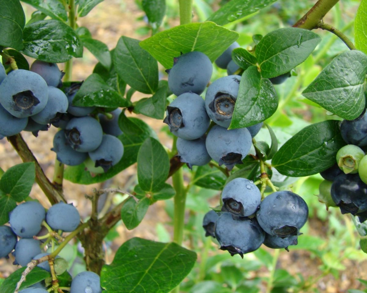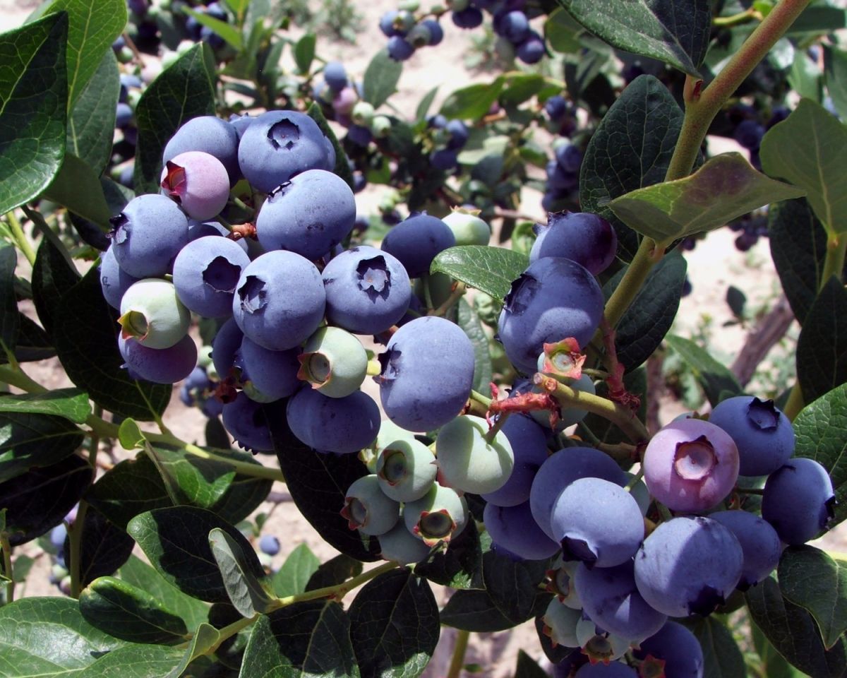Раскидистый куст вырастает от 1,6-1,8 метра. Побеги прямостоячие, с характерной красной окраской и зелеными листьями с сизоватым налетом. Они сплетаются, образуя густую крону. Краснота покрова побегов указывает на высокую морозостойкость растения. Цветки на кусте распускаются весной и радуют взгляд нежным бело-розовым цветом. При регулярном уходе с куста голубики сорта Элизабет можно получать урожай на протяжении полувекового периода. Регионы, где рекомендуют выращивать ягоды – средняя полоса России. Плоды отличаются крупным размером, достигая в диаметре 20-22 мм. Окраска кожицы голубики традиционного голубого цвета с характерным налетом. Она плотная и не подвержена растрескиванию. Кисти рыхлые, с веток снимаются легко. На вкус голубика очень сладкая, с тонким виноградным послевкусием. Этот десертный сорт один из самых вкусных в мире.