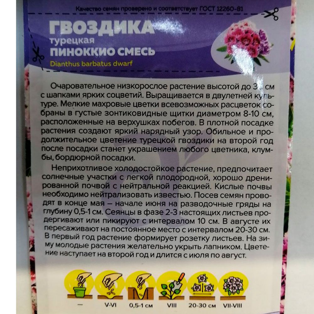 Гвоздика Турецкая Пиноккио 0,1 г Семена Алтая
