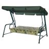 Трехместная модель. Угол наклона спинки регулируется пошагово, при этом качели можно разложить полностью на 180 градусов. Основой сиденья служит качественная оцинкованная сетка, которая не боится влаги и эластична. Модель комплектуется тентом из полиэфирной ткани. Текстильный комплект с верхом из плотного поликоттона.