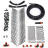 Комплектация: шланг магистральный - 18 м, микротрубка - 60 шт.,цанговый тройник 1/2-1 шт., цанговый зажим 1/2-3 шт.,цанговый уголок 1/2-2 шт.,компенсированная капельница - 61 шт.,стрелка с зажимом - 60 шт.,фильтр тонкой очистки - 1 шт., зажим для магистрального шланга -2 шт., прижим для магистрального шланга- 16 шт.,шило для магистрального шланга.