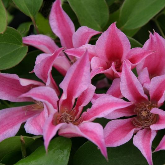 Клематис Дачес оф Альбани – это лиана экзотического происхождения, зона субтропик. Это многолетнее растение с массивной кроной и умеренным темпом роста. Размер такой лианы почти три метра, если быть точнее, то 2,8 м. Стебель вьющийся, листья обратнояйцевидные, зелёного цвета, вьющейся формы. По характеру расположения цветки данной культуры одиночные, они крупноцветкового размера диаметром 6 сантиметров, тюльпановидной формы. Количество лепестков в цветке обычно от 4 до 6. Особенность лепестков клематиса Дачес оф Албани заключается в том, что они заостренные, немахровые, и по своей окраске розовые с малиновыми продолговатыми полосами, их верхняя часть загнута вверх. В целом цветы у данного сорта в диаметре составляют 8 сантиметров. Тычинки у растения достаточно светлые, а пыльники кремовые.