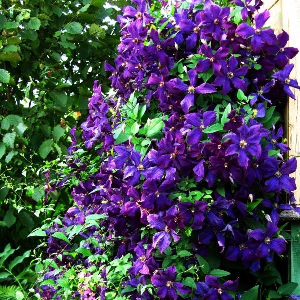 Полиш Спирит отличается быстрыми темпами роста, вьющиеся лианы достигают в высоту 4 м. За 2-3 года жизни куст разрастается в диаметре до 1 м, повторяя форму установленной для него опоры. Корневая система растения хорошо развита, благодаря мощности разветвленных корней клематис быстро укореняется. Однако при рыхлении стоит учитывать, что корневые отростки расположены у поверхности грунта, их легко повредить. Полиш Спирит – сорт крупноцветковой, каждый цветок достигает в диаметре 10 см и насчитывает от 4 до 6 лепестков. Для лепестков характерна ромбическая форма с заостренными кончиками. Цветки широко открытые, бархатистые, но не махровые. Окрас лепестков – насыщенно-фиолетовый с пурпурным отливом. Тычинки тёмно-красные, располагаются на бело-розовом основании, что придает цветкам эффект свежести. По срокам цветения Полиш Спирит относится к поздноцветущим. Цветение стартует в 20-х числах июня и продолжается до сентября в северных регионах. На юге клематис украшает сады фиолетовыми цветами весь бархатный сезон.