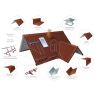 Конек крыши — обязательный элемент кровли, защищает вентиляционные зазоры верхнего горизонтального ребра в кровле, от попадания осадков и препятствует срыву кровельных листов сильным ветром. Планка конька закрывает место соединения двух скатов крыши в её верхней части (на коньке). В монтаже очень прост и не требует дополнительных торцевых заглушек. Крепится конёк на удлиненные кровельные саморезы. Так же используйте уплотнитель под конек для препятствия попаданию снега, дождя и ветра во внутреннее пространство кровли. Устанавливается на крыше в последнюю очередь, когда уже смонтированы все кровельные листы, профнастил или металлочерепица.