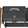 Регулируемый по высоте колосник (угольный поддон) мангала позволяет контролировать степень термообработки продуктов. Чаша мангала и печь оснащены выдвижными зольниками. Справа и слева располагаются откидные столики. Внизу – полки. Колёса облегчают транспортировку. При желании вместо колёс можно установить вторую пару регулируемых опор, предусмотренную в комплекте.