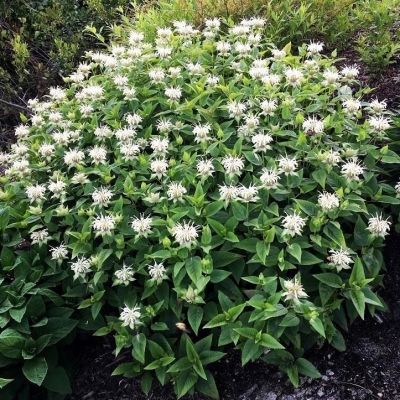Монарда гибридная ‘Bee Bright’ (Би Брайт) – Корневищный многолетник с компактной кроной до 50 см высотой. Листья темно-зеленые, ароматные. Цветки собраны в головчатые соцветия и располагаются на концах побегов. Прицветники белые, цветки зеленоватые. Цветение во второй половине лета, в июле-августе. Для посадки предпочитает солнечные места, но может расти и в полутени. К почве не сильно требовательна, но лучше избегать тяжелых кислых почв. На них растет плохо. Сорт устойчив к мучнистой росе. Разрастается не сильно. Нуждается в делении куста один раз в 3-4 года. Активно привлекает пчел и шмелей. Зимостойкость высокая, в дополнительном укрытии не нуждается. Стебли снизу оголяются, поэтому растение нуждается в размещении на среднем и заднем плане.