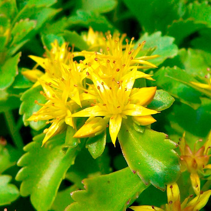 Очиток ‘Spirit’ (Спирит) – Почвопокровный многолетник, высотой до 40 см. Образует плотный полушаровидный куст. Листья плотные зеленые, кожистые узкоэллиптические, зубчатые по краю. Осенью краснеют. Цветки некрупные, желтые, собраны в щитковидные соцветия до 6 см в диаметре. Цветение в июле-августе. Для посадки необходимо выбирать солнечные места с хорошо дренированной почвой. Абсолютно не переносит даже малейший застой влаги в почве. Зимостойкость высокая, в дополнительном укрытии не нуждается.