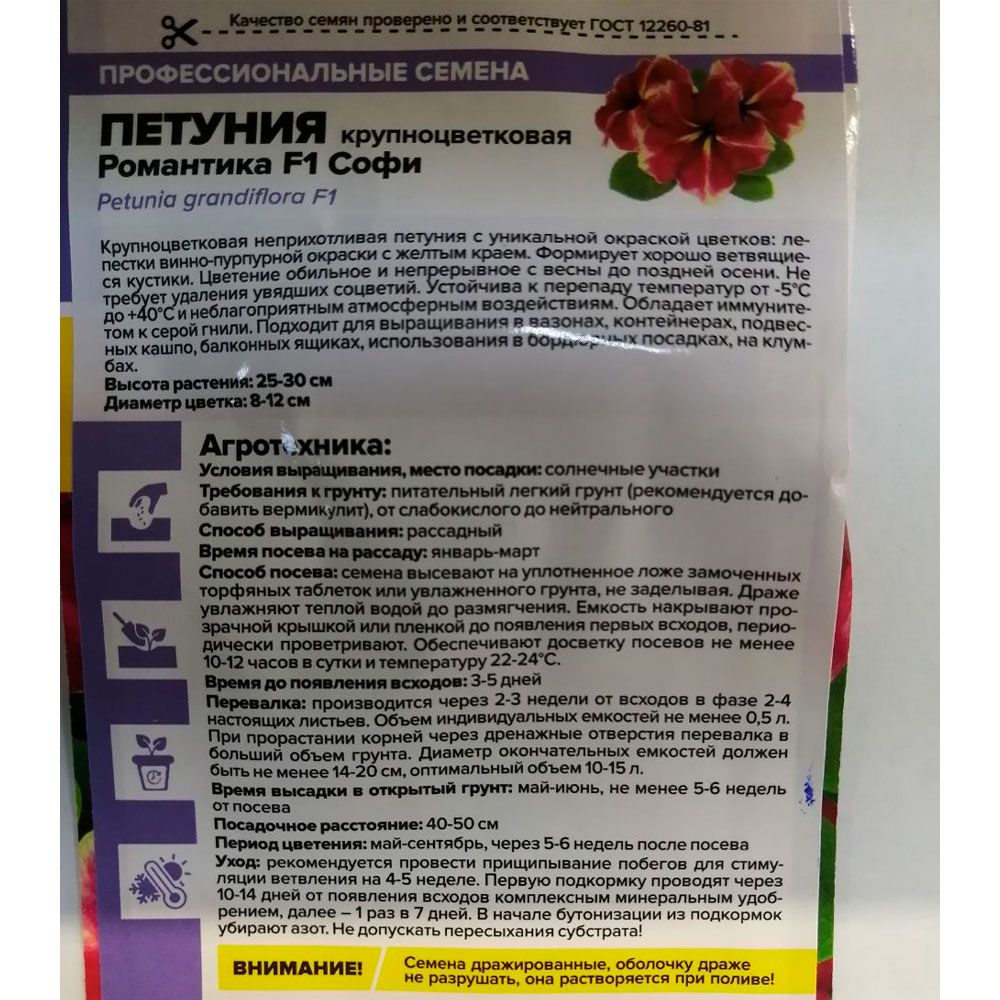 Внимание! Семена дражированные, оболочку не разрушать, она растворяется при поливе!