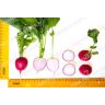 Высокоурожайный раннеспелый гибрид. От всходов до начала сбора урожая проходит 25-30 дней. Корнеплоды крупные, насыщенного красного цвета, выравненные, округлой формы, с тонким и коротким «хвостиком». Масса корнеплодов 35-45 г. Мякоть белоснежная, искрящаяся, очень сочная и хрустящая, вкус нежный, сладковатый, с легкой остротой.