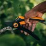 Плоскостной секатор Fiskars Plus P521 1057167 подходит для обрезки стеблей и веток с максимальным диаметром 24 см. Лезвия из закаленной стали с антифрикционным покрытием отличаются прочностью и устойчивостью к образованию коррозии. Простая блокировка лезвий при помощи одной руки обеспечивает безопасность при хранении и транспортировке. Верхняя рукоятка оснащена покрытием SoftGrip для комфортного удержания инструмента во время работы.
