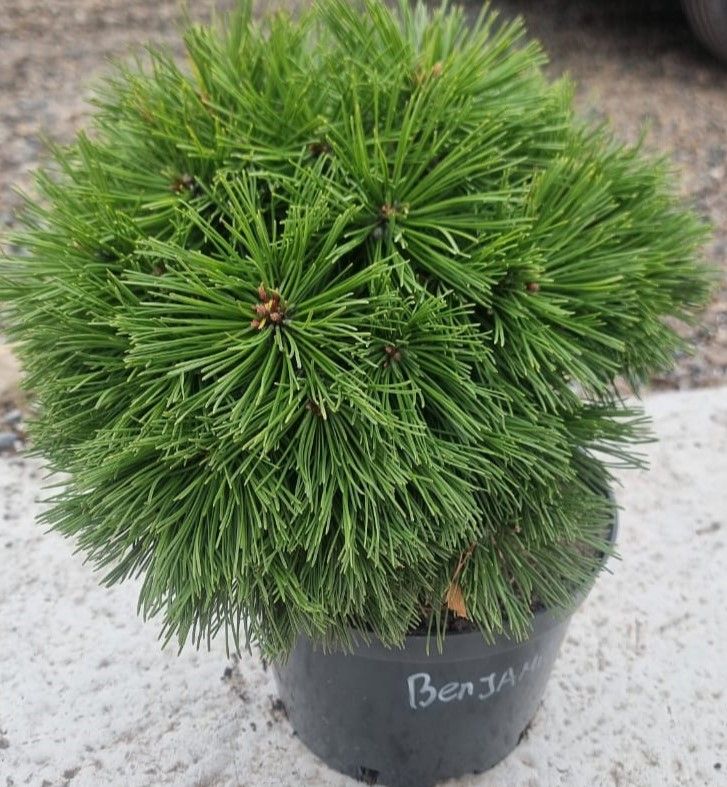 Карликовая разновидность горной сосны получена в Германии. Миниатюрные формы и плотная структура кроны сорта Бенджамин позволяют выращивать растение не только в открытом грунте, но и в контейнерах, украшая зимний сад, террасы и балконы.
