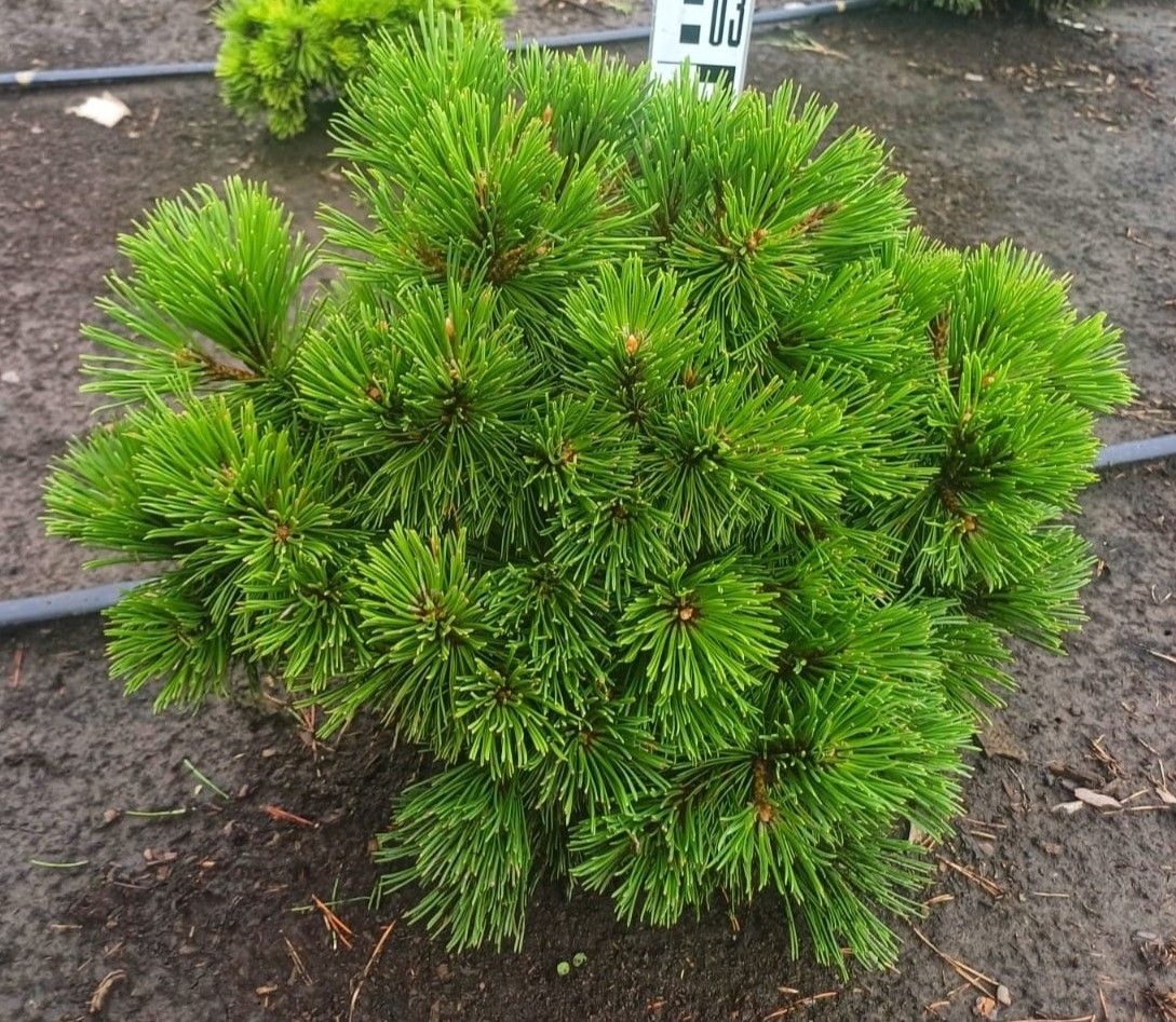 Посадочная яма делается из расчета две высоты и две ширины корневого кома, приобретенного растения. Если почва глинистая, то на глубину ямы необходимо поместить 10-20 см дренажа, например: гравий, керамзит, битый кирпич, щебень. Яму желательно наполнить специальным грунтом для хвойных растений или почвосмесью из расчета 1:2:2 (одна часть земли, две части торфа и две части песка). При посадке в яму можно добавить корневин или любой другой стимулятор корнеобразования, а также ОМУ (органическое минеральное удобрение) для хвойных растений. Целостность корневого кома без необходимости не нарушать. Расположить саженец необходимо таким образом, чтобы корневая шейка растения не была заглублена. После посадки саженец хорошо поливают и мульчируют корой, щепой, хвойным опадом или опилками. Если в приготовленную почвосмесь не добавлялось ОМУ для хвойных растений, то под мульчу можно заделать в грунт любое минеральное удобрение для хвойный растений. Все карликовые сорта удобряются из расчета 30% от нормы, указанной производителем. Сосны привитые на штамб необходимо закрепить на опору чтобы помочь растению противостоять снеговым и ветровым нагрузкам.