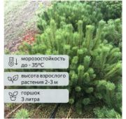 Небольшое растение категории карликовых, достигающее в высоту 2,5 м. Отличается ежегодным приростом в 6-8 см. Горная сосна имеет крону конусовидного типа, в диаметре достигает 3 м. Симметричное растение отличается высокой декоративностью.