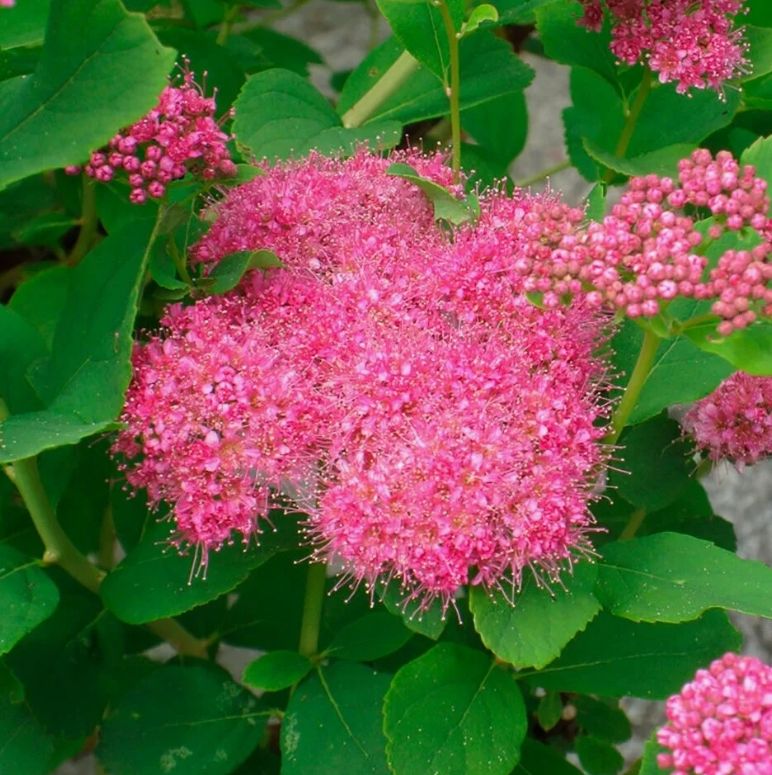 Спирея густоцветковая – кустарник с округлой компактной кроной. Высота взрослого растения не превышает 0.8 м. Листья эллиптические от 1.5 до 4 см, края зубчатые. При распускании и летом зеленые. Осенью окрашиваются оранжево-красные тона. Цветки некрупные, розовые, собраны в щитковидные соцветия, расположенные на конце побега. Цветет обычно в конце июня, не менее трех недель. Для посадки лучше всего выбирать хорошо освещенные места, в полутени растет хуже. К почвам не требовательна: может расти на любых, но без застойного переувлажнения. В отдельные годы возможно подмерзание побегов.