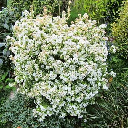 Спирея Вангутта ‘Pink Ice’ (Пинк Айс) – Медленнорастущий сорт с плотной, округлой кроной. Высота взрослого растения не превышает 1.0 м. Молодые побеги розоватые. Листья некрупные эллиптические, края зубчатые. При распускании светло-зеленые с розовыми и кремовыми пятнами. Летом зеленые с белыми пятнами. Осенью окрашиваются от золотисто-желтых до багряных тонов. Цветки белые некрупные, собраны в щитковидные соцветия, расположенные на конце побега. Цветет обычно в конце июня, не менее трех недель. Для посадки лучше всего выбирать хорошо освещенные места, в полутени растет хуже. К почвам не требовательна: может расти на любых, но без застойного переувлажнения. В отдельные годы возможно подмерзание побегов.