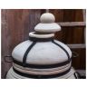 Тандыр "Гектор" выполнен в виде округлого бочонка среднего объёма. Тандыр имеет крышки двух уровней (колпачок и крышку). Удобно выполненный колпачок, позволяет не терять тепло при открывании тандыра. А крышка с удобными ручками позволяет легко открывать тандыр и закладывать в него продукты для приготовления. Кованная подставка - ножки обеспечивает удобное использование тандыра. Красоту тандыру придаёт интересный декоративный орнамент, расположенный в центральной его части. Керамический тандыр в основном выполнен в бежевом цвете, коричневый цвет добавлен в области узора. На поверхность орнамента нанесена глазурь, которая защищает его от влаги и грязи. Изготовленный из шамотной глины высокотемпературного обжига он обладает высокой теплопроводностью, экологичностью, прочность и долговечностью более 10 лет.