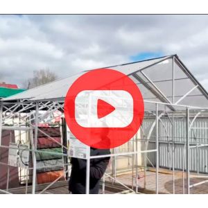 Сборно – разборный каркас теплицы изготовлен из профильной трубы 30х20х1,5мм и 20х20х1,2мм окрашенной полимерной краской. Ширина 3,5м позволяет установить три грядки и два прохода. Высота теплицы 2,7 м. В ней комфортно находиться людям выше среднего роста. Прямые стены удобны для выращивания высоких и вьющихся растений. Широкий дверной проем удобен для прохода. Вентиляционные форточки на дверях – дополнительная возможность проветривания.