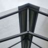 - Расстояние между дугами 0,65 см, скатная крыша и 9 ригелей – направляющих позволяют выдержать повышенную снеговую, ветровую нагрузку, уменьшает вероятность деформации и провисания поликарбоната под слоем снега.