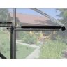 Ограничитель открывания двери/форточки предназначен для исключения повреждения термопривода и двери/форточки при штормовых порывах ветра, направленных на открывание последних. Устанавливается с учетом натяжения шнура в крайнем положении открытой термоприводом двери/форточке. Гайка винт-петли крепится аналогично креплению кронштейна под поликарбонатное покрытие. Во избежание "закусывания" шнура винт-петлю крепить ближе к центру верхней планки двери/форточки, другой конец к коробке двери/форточки или коньковой части теплицы.