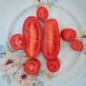 Раннеспелый (срок созревания 90-100 дней), низкорослый (высота куста 40-50 см) сорт. Его можно выращивать в открытом грунте, в небольших плёночных теплицах и на балконе. Крона небольшая и компактная. Стебель толстый и крепкий. Крону и плоды он держит хорошо, но из-за активного созревания томатов необходимо подвязывание. Форма цилиндрическая, вытянутая и с носиком (иногда носик вдавлен вовнутрь). Вес плодов около 80-90 г, длина 12-15 см. Кожура гладкая и не растрескивается. Оттенок зрелого плода - красный, незрелого - светло-зелёный. Мякоть плотная, сахаристая и мясистая, бледно-розового оттенка. Внутри одна камера, семян немного. Томаты универсальные, поэтому подойдут для употребления в свежем виде, для консервации и замораживания. На одном кусте созревает от 1,5 до 2 кг, с 1 м² можно снять 5,4 кг томатов.