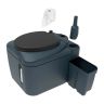 Отличительная черта торфяного туалета Rostok ЕСО - разделение фракций в разные ёмкости. Это упрощает обслуживание туалета и избавляет от неприятного запаха в помещении. Жидкие стоки направляются в герметичную канистру, а твёрдые стоки попадают в накопитель, где происходит смешивание с торфом. Канистра объемом 20 литров имеет мерную шкалу для определения уровня жидкости. В комплекте с 25-литровым накопителем идут биоразлагаемые пакеты для перемещения компоста. Также к туалету прилагается 20 литров торфа в специальной емкости и лопатка для засыпки.