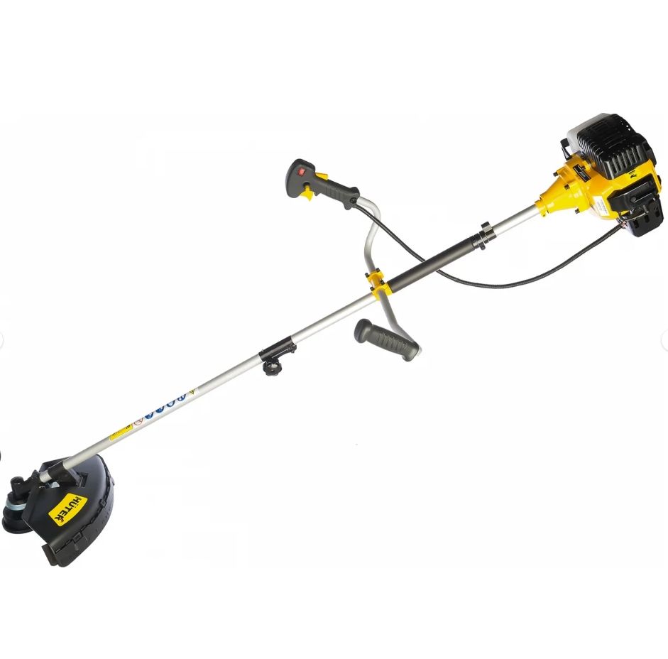В стандартную комплектацию входит стандартная катушка с леской и трехлепестковый диск 3T, что позволяет легко скашивать и мелкую газонную траву и поросли кустарников. Бензотриммер имеет обрезчик лески, который контролирует ее длину. Для удобства работы инструмент оснащен стандартным ремнем «через плечо». За комфорт работы отвечает стандартная антивибрационная система. Защитные очки в комплекте не идут.