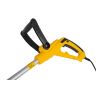 Электротриммер Хутер GET-600 работает практически бесшумно. Его легко вести одной рукой, удерживая за эргономичную рукоятку. Резиновая накладка обеспечивает мягкий захват и поглощает возникающую вибрацию. Блокировка выключателя предотвращает случайный запуск. Использую дополнительную замкнутую D-образную ручку, легче маневрировать между препятствиями и менять угол кошения. Ее положение вдоль штанги и наклон можно регулировать. Коса легко разбирается на две части для компактного хранения и перевозки.