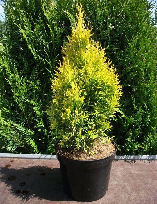 Thuja occidentalis 'Golden Smaragd' (Голден Смарагд) – желтохвойный пирамидальный сорт туи западной до 5 м высотой. Крона густая, симметричная, узкая до 1.5 м шириной. Хвоя желто-зеленая, не меняет своей окраски в течении года. Предпочитает солнечные места, так как в тени хвоя зеленеет. Растет не быстро, 10-15 см в год. К почвам не требовательна, но предпочитает свежие, хорошо увлажненные почвы. Зимостойкость средняя, первые 2-3 года после посадки желательно укрывать от яркого Солнца с февраля до конца апреля. С возрастом устойчивость повышается.