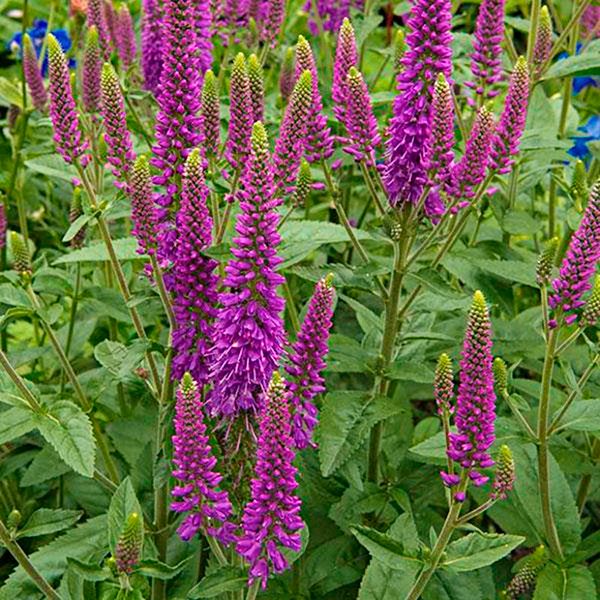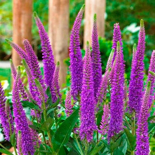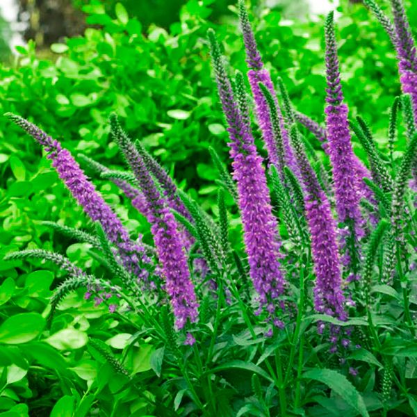 Вероника длиннолистная ‘First Match’ (Фест Матч) – Корневищный многолетник высотой до 50 см. Побеги прямостоячие, крепкие, не сильно ветвящиеся. Листья темно-зеленые, эллиптические, по краю крупно пильчатые. Цветки не крупные, собраны в колосовидные удлинённые соцветия, лилового цвета. Первая волна цветения начинается в конце мая. После окончания первой «волны» цветения, в начале июля, можно обрезать растение на половину и получить вторую «волну» цветения. Для посадки предпочитает солнечные места со свежей, хорошо дренированной почвой. Зимостойкость высокая, в дополнительном укрытии не нуждается.